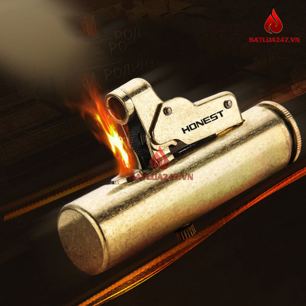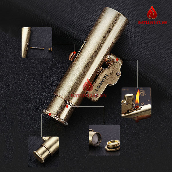 Bật lửa xăng đá cối cổ đồng khối Promise BNC016