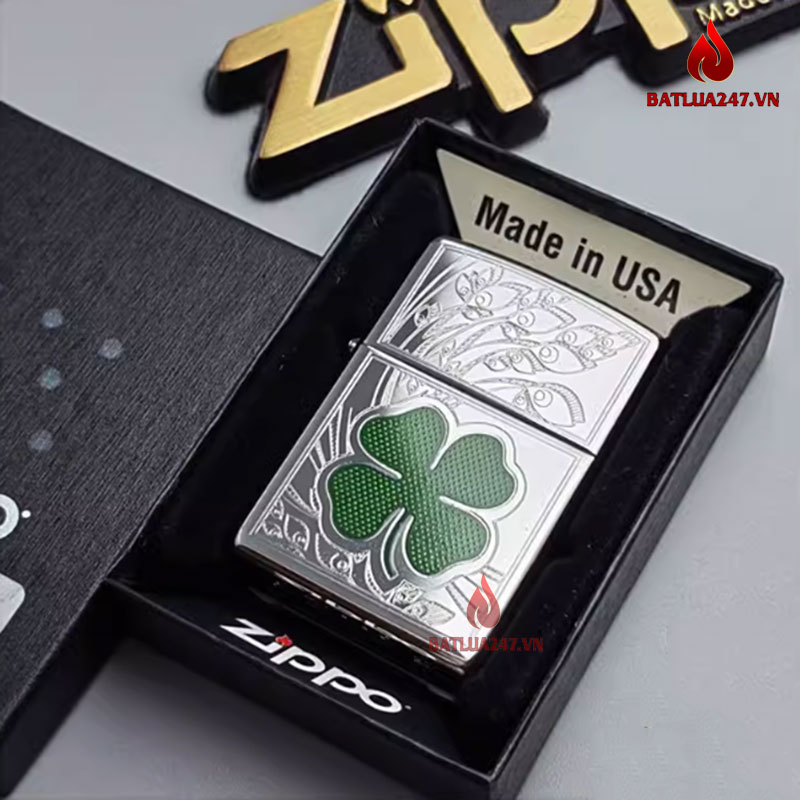 Bật lửa xăng đá Zippo 24699 cỏ 4 lá may mắn