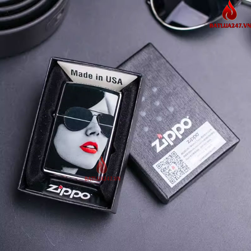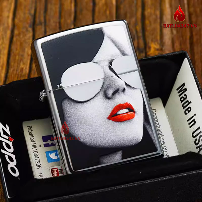 Bật lửa Zippo Cô gái đeo kính ấn tượng