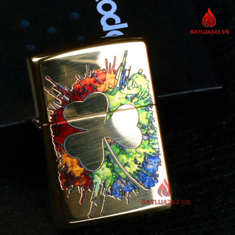Bật lửa xăng đá Zippo 49125 cỏ 3 lá may mắn
