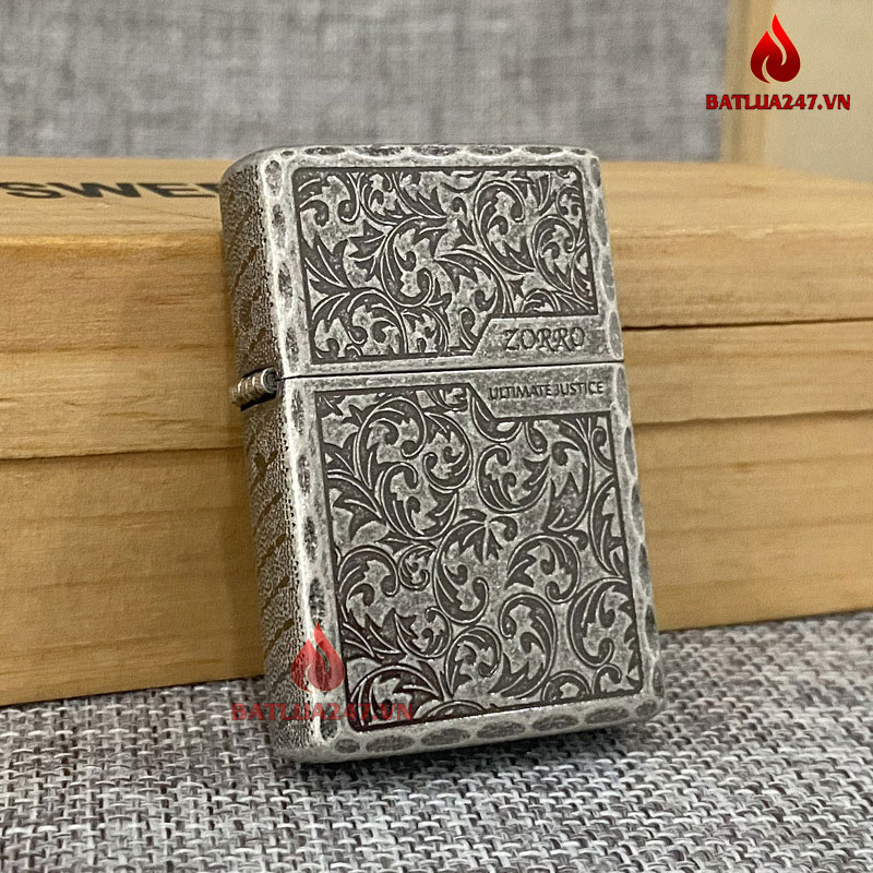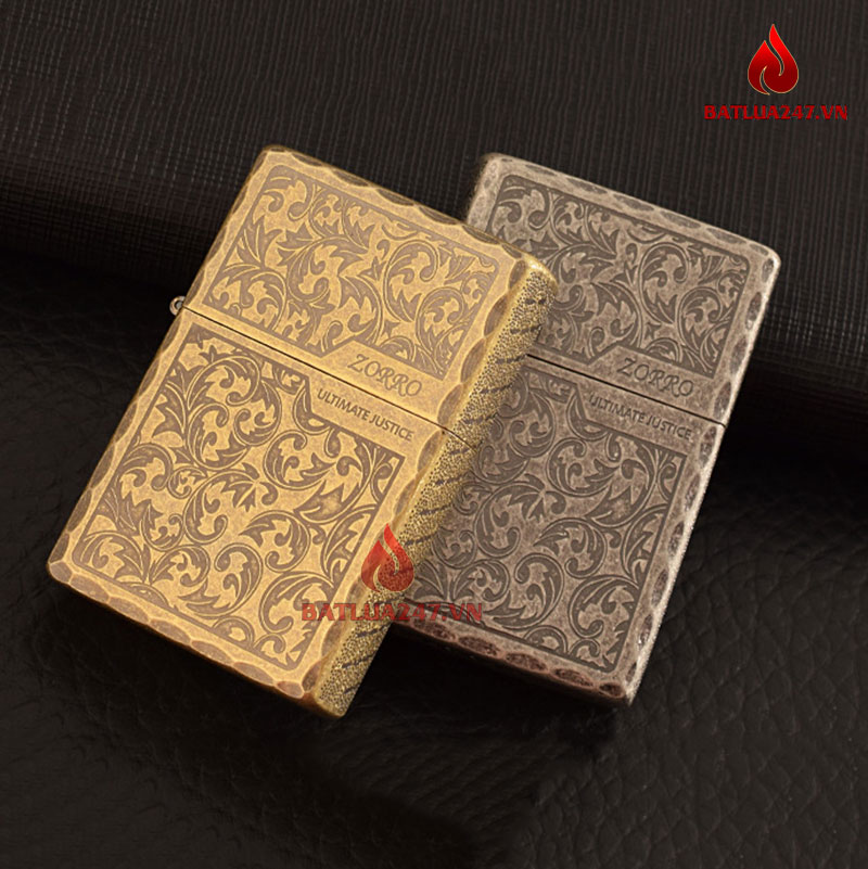 Hộp quẹt Zorro Z92042 xăng đá cổ điển 2 mộc đáy