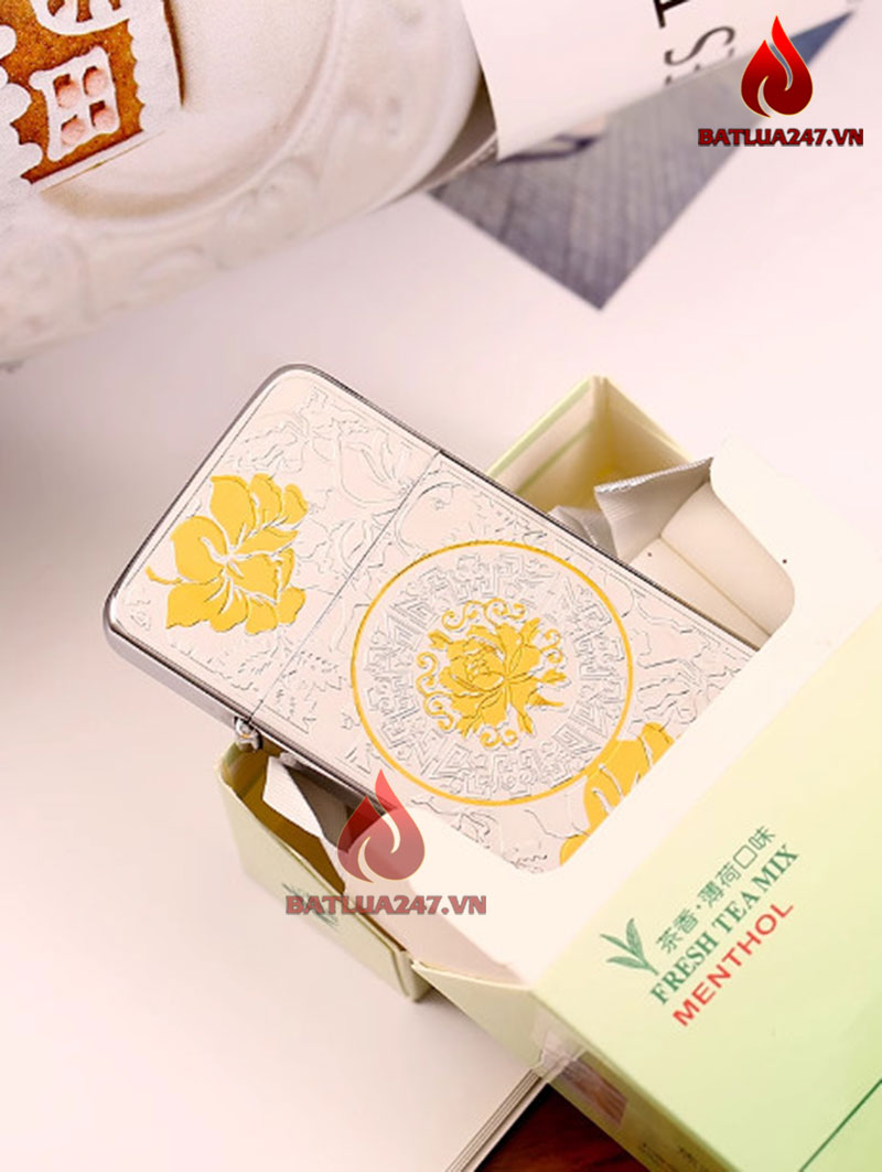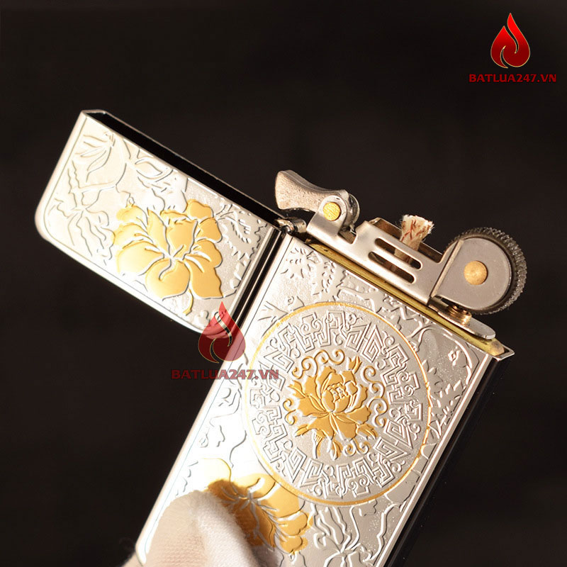 Bật lửa xăng đá Zorro ZS5-309 hoa mẫu đơn